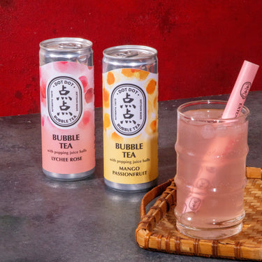 Celebrate the Lunar New Year with our Dot Dot Bubble Tea Duo, featuring two cans of premium bubble tea, perfect for refreshing your taste buds and adding a touch of fizz to your festivities. This duo includes two flavours that combine sparkling tea with delicious fruity infusions and popping juice bubbles. Each can comes with a telescopic paper straw, offering a fun and unique bubble tea experience.