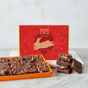 While the Lunar New Year, a.k.a Chinese New Year is known for red envelopes, lucky dumplings and celebration set in tradition, we're here adding a cute C&S twist to it with our brownies! Wheat-free, palatable and absolutely delicious (also vegan!) our wheat-free, vegan brownie box, with our limited edition CNY sleeve, makes for the perfect, drool-worthy present!