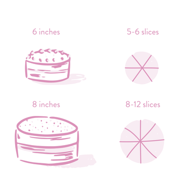 All of our postable cakes are 6" and serve approx. 4 - 5 slices.