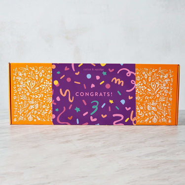 When congratulations are in order, send them your warmest wishes with our indulgent vegan wheat-free brownie bites! We've designed a vibrant hand illustrated sleeve that reads 'Congrats!' to make this gift all the more special.