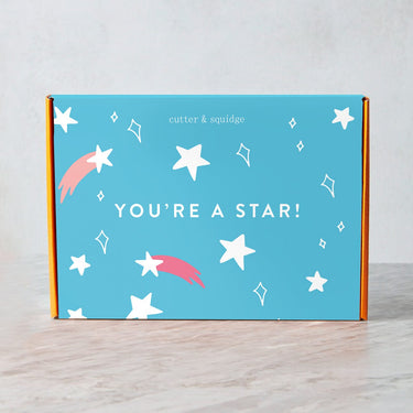 Treat them like the superstar they are with our gooey no nut flavours brownies, packaged in our hand illustrated 'You're a Star' sleeve featuring the sweetest shooting stars for an extra special touch.