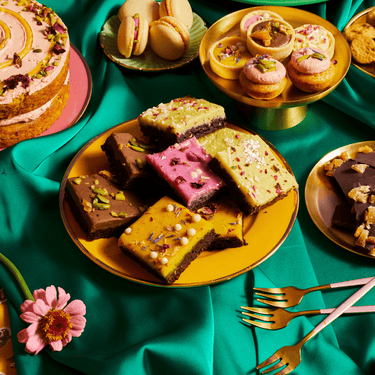 Our Diwali brownies are made with a fluffy egg free base with four indulgent flavours, each decorated to delight. Each brownie is a little festival on a plate, perfect for sharing or as a Diwali gift this year.