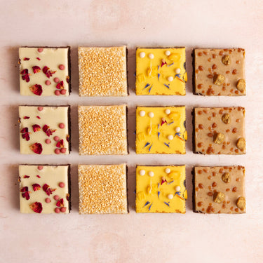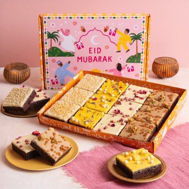 Celebrate the sweetness of Eid with our Eid Mixed Brownie Box. A delightful selection of rich, fudgy brownies infused with traditional flavours and fresh twists. From fruity passionfruit & juicy mango, to sticky date caramel, each bite is more delicious than the last. Our handcrafted Eid brownies are the most delicious way to elevate your dessert table throughout the celebrations or as a delightful gift for loved ones.