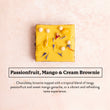 Chocolatey brownie topped with a tropical blend of tangy passionfruit and sweet mango ganache, or a vibrant and refreshing taste experience.