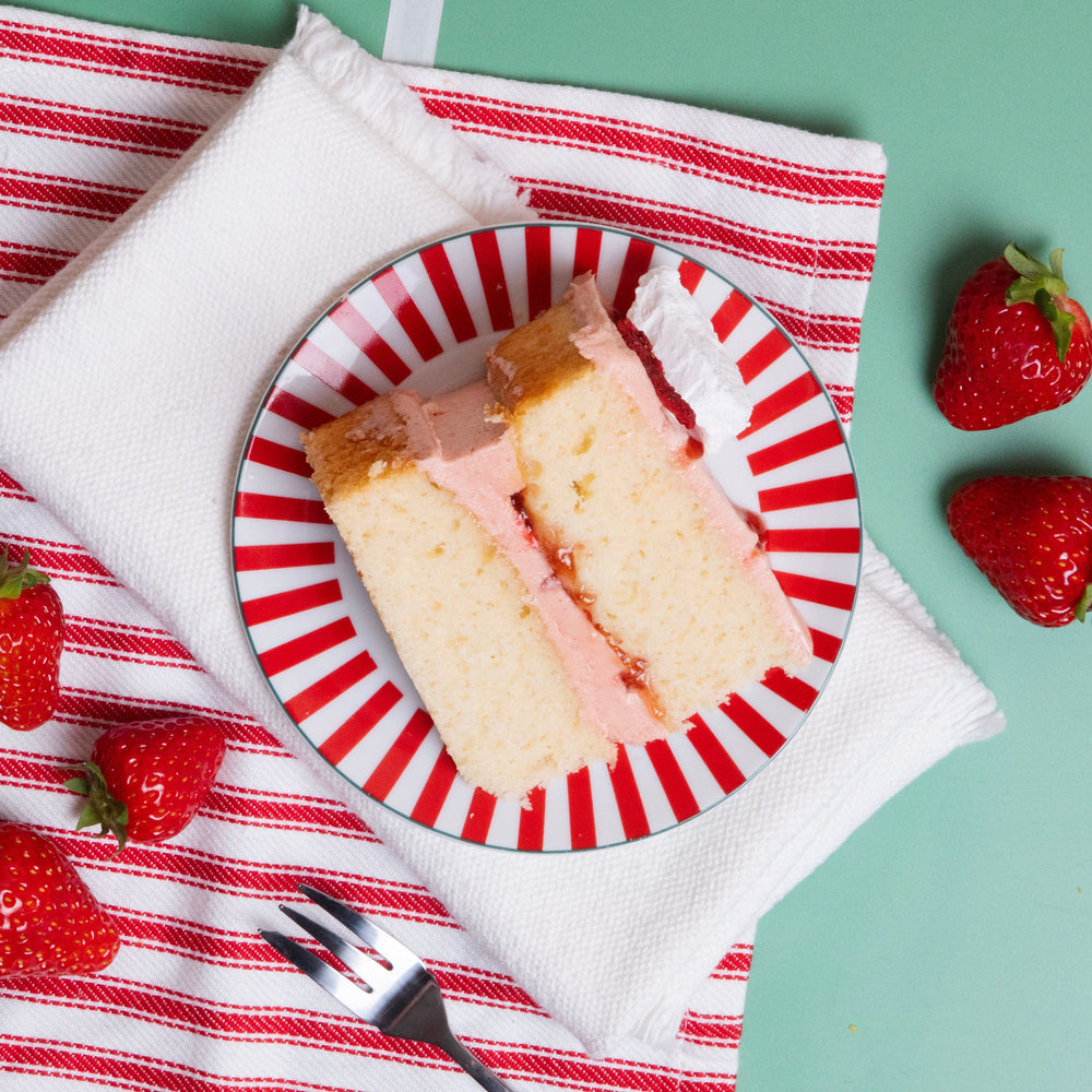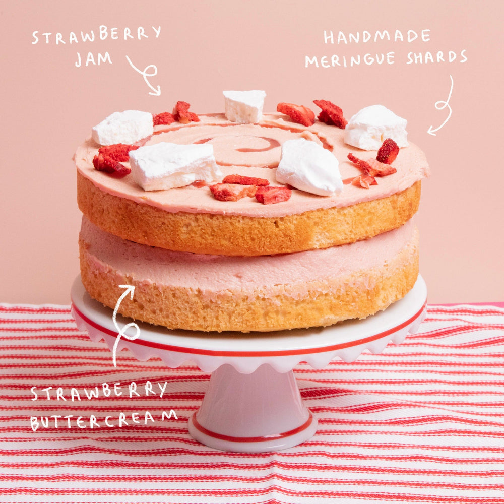 Say hello to summer on a cake stand. Our Eton Mess Cake is a joyful twist on an iconic British dessert, with layers of fruity strawberry buttercream, strawberry jam and light vanilla sponges. It’s finished by hand with a beautiful scattering of freeze-dried strawberries and sweet meringue shards. This delicious celebration cake is a limited edition bake, so catch it while you can!