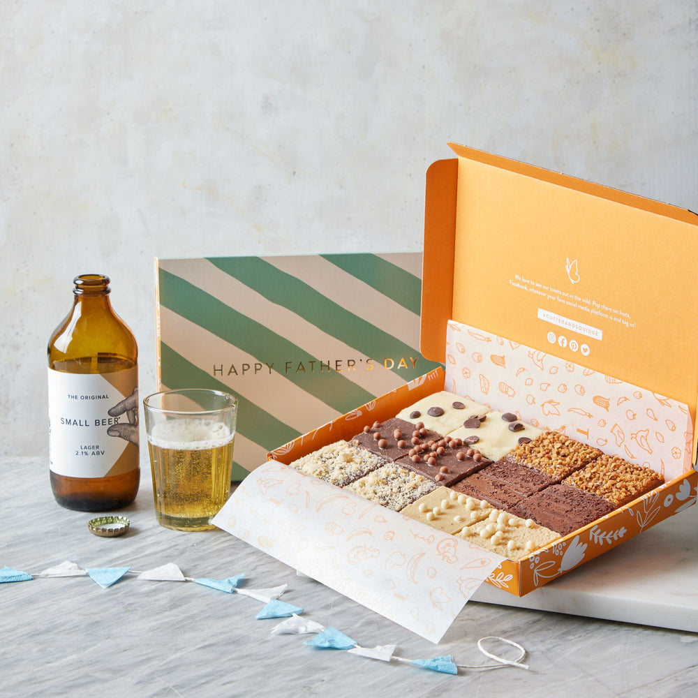 Our Father's Day Brownies & Beer Gift Box pairs two delightful flavours with a can of Big Smoke Brew Helles Lager - the perfect Father's Day gift for beer enthusiasts! The gift box is packaged in our bespoke Father's Day gifting sleeve, inspired by Annabel and Emily's father to add that extra loving touch to your gift!