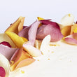Lots of lovely rose petals in this wheat free cake, with 3 alternating layers of moist, wheat free vanilla and chocolate cake filled with a luxurious Belgian chocolate buttercream. Covered in a lovely light vanilla buttercream and finished with rose petals and a touch of gold leaf.