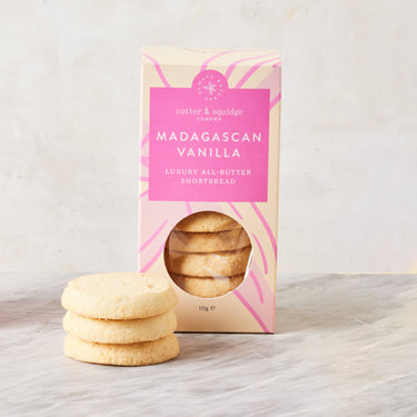 Vanilla Shortbread: Butter (MILK), Flour [WHEAT Flour (WHEAT Flour, Calcium Carbonate, Niacin, Iron, Thiamine), Sugar, Cornflour, Whole MILK Powder (MILK), Vanilla Extract Mix (2%) [Water, Sugar, Glucose Syrup, Glycerine, Vanilla Pods: vanilla pods (100%)], Salt: Fine Sea Salt.