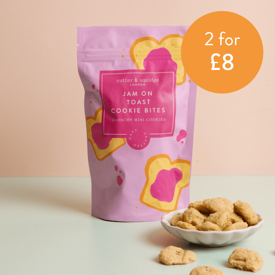 A breakfast classic, transformed into a delightful crunchy snack. With jammy flavoured chunks, every bite of these handcrafted Cookie Bites tastes like a fresh slice of toast loaded with fruity raspberry jam.