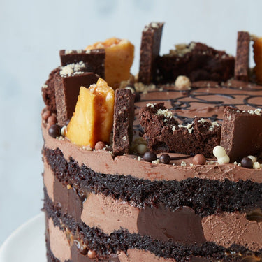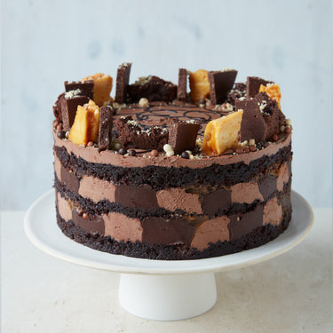 This quintessentially delicious chocolate cake is fit for any celebration. Moist, rich chocolate sponge is layered with chocolate buttercream and a generous swirl of salted caramel for that perfect sweet-salty hit in our Chocolate Squidge Naked Cake. But we didn’t stop there; sprinkled onto the filling for extra crunch and texture - our chocolate dream bar, packed with honeycomb and biscuit crumb.
