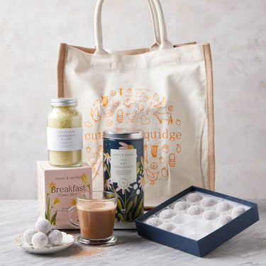 An uber cute bag, bath salts, hot chocolate, english breakfast tea and abso-blooming-lutely delish Marc De Champagne truffles, make for the ideal combo of the finest things in life, perfect for mum to relax, replenish and rejuvenate.