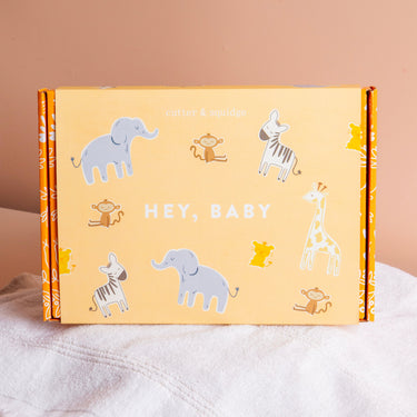 1 x Hey Baby No Nut Flavours Mixed Mini Brownie Box (12 pieces) - A selection of our signature fudgy brownies, wrapped in the cutest “Hey Baby” sleeve featuring adorable animal illustrations.