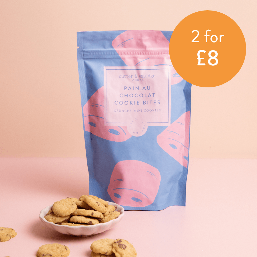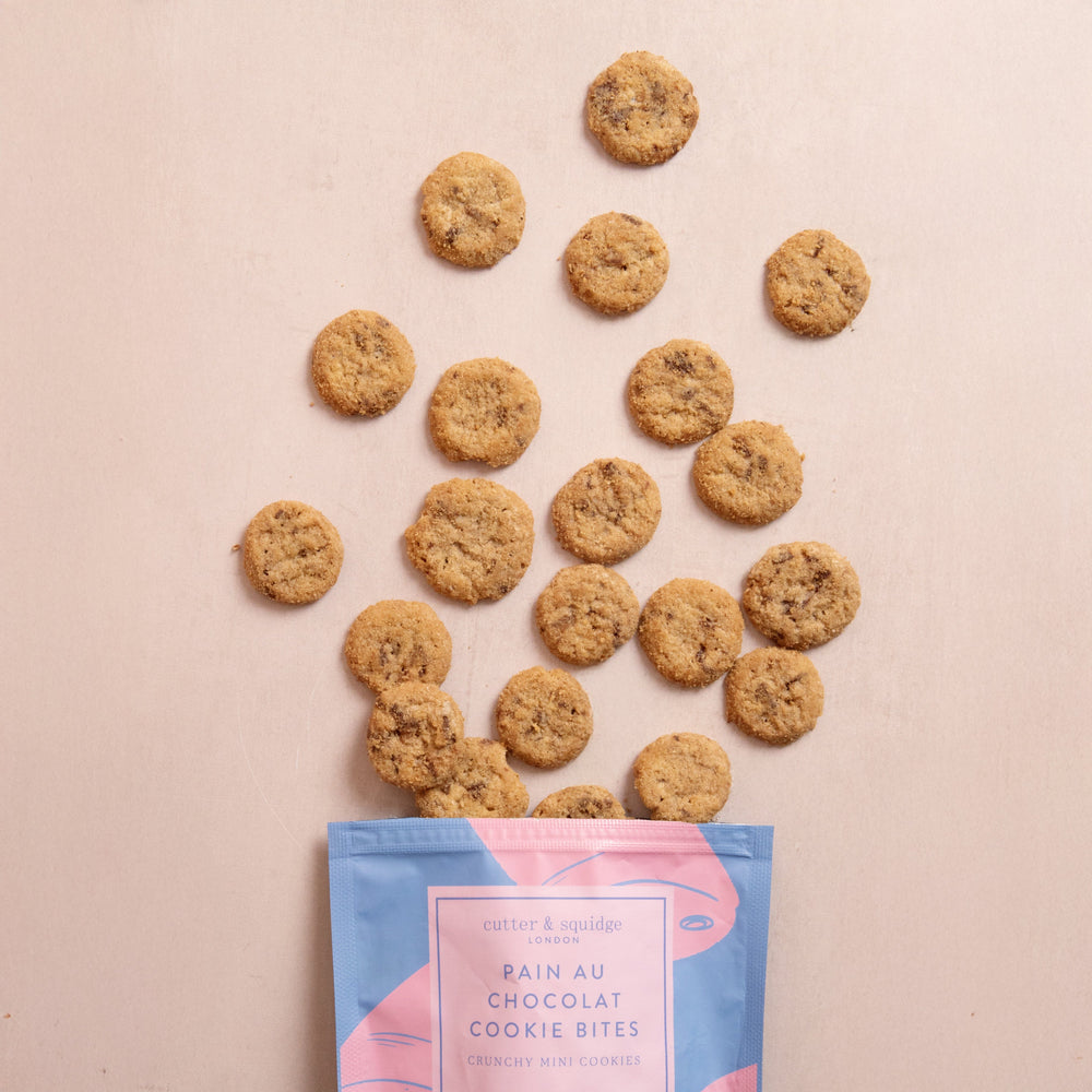 A treat for pastry lovers, our pain au chocolat inspired Cookie Bites are the perfect handcrafted indulgence. With shavings of dark chocolate and a crunchy, crumbly biscuit base, these delights are perfect alongside a café au lait.