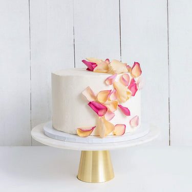 A true rain of petals makes this spectacular Wedding Cake a true statement that will fill the room. Made with all natural ingredients and finished by hand by our expert cake makers, this cake has natural real roses and petals finishing off the design in style to celebrate a very special moment.
