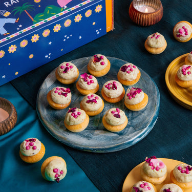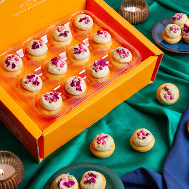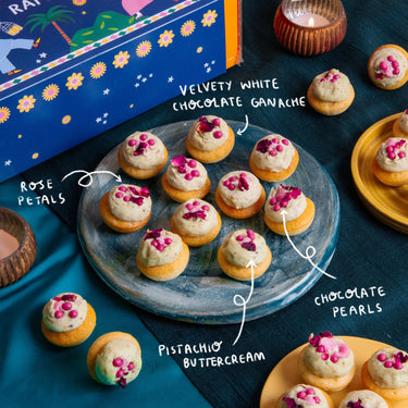 Our Ramadan Rose & Pistachio Cupcake Box features a delightful selection of mini vanilla cupcakes, each topped with a nutty layer of pistachio buttercream and finished with a velvety white chocolate ganache infused with a hint of rose - perfect if you don’t want to buy a whole Ramadan cake. Decorated with crispy, white chocolate pearls and delicate rose petals, our Ramadan cupcakes offer the perfect blend of flavours and textures, making them a beautiful and indulgent treat for your celebrations or a thoughtful gift for Ramadan to give to your loved ones.