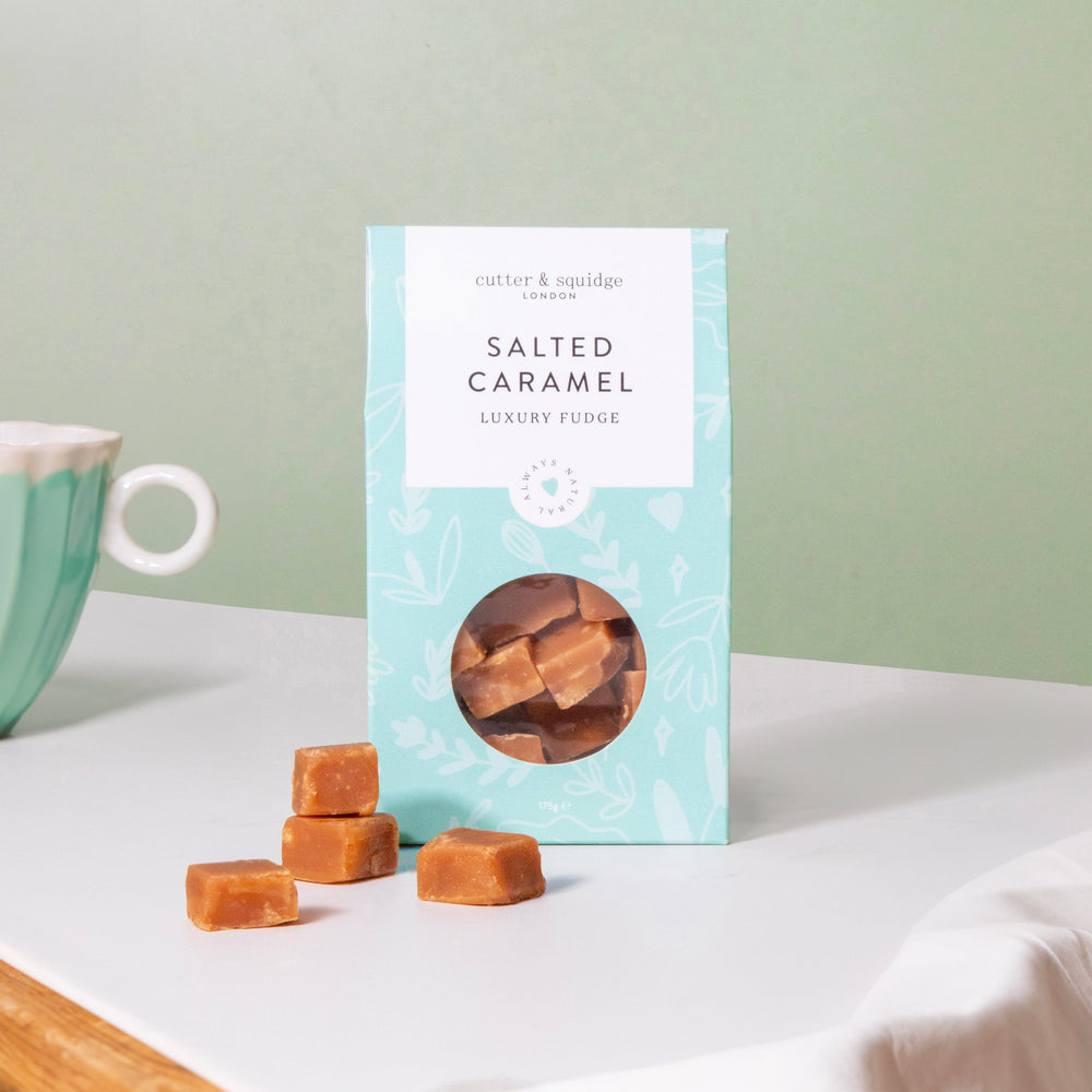 Indulge in the heavenly taste of our soft and smooth salted caramel fudge. The perfect addition to gifts and hampers for friends and family.