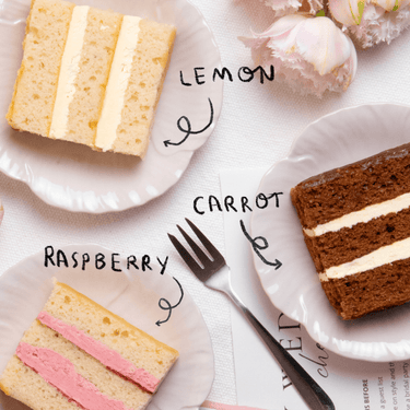 For naked style cakes, we do recommend choosing tier flavours that are similar, as the colour of the sponge will peek through. For example, Chocolate Hazelnut and Chocolate Salted Caramel, or Raspberry and Lemon.