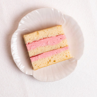 Raspberry: A soft, vanilla sponge with a delicious raspberry buttercream and mouth-melting raspberry jam!